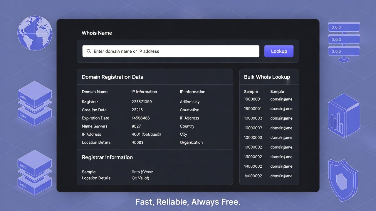 Always free Whois lookup tool for domain and IP. Get whois details lookup, bulk whois IP lookup, reverse whois lookup & location info fast.